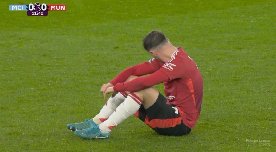 曼联2-1曼城的比赛中,芒特首发出战,第13分钟伤退。