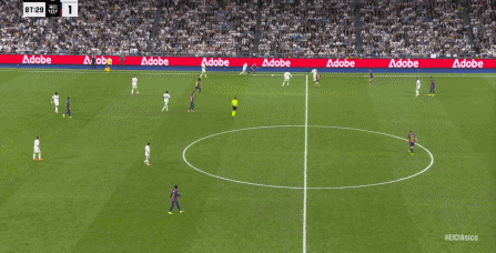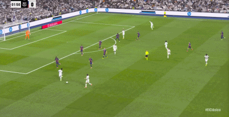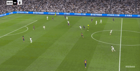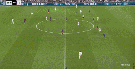 这个时候,比赛的天平已经在向皇马倾斜,但足球比赛终归和运气等因素紧密相关,所以在第34分钟,巴塞罗那通过带球深入到贝林厄姆一侧,一度制造了开场以来的最好机会: