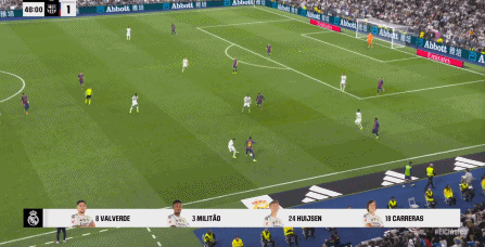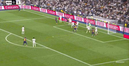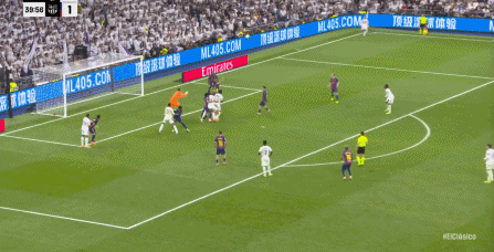 但事实并非如此,因为皇马很快也用类似的进攻威胁到了巴萨,制造了佩德里的黄牌,并且在这次制造的定位球当中,就再次超出了比分: