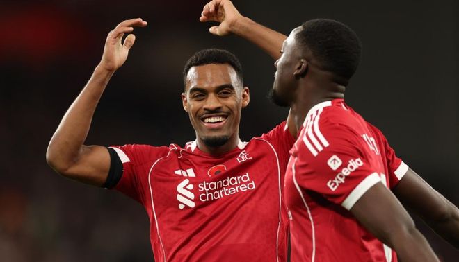 利物浦排出了4231阵型。埃基蒂克顶在最前面。萨拉赫、索博斯洛伊和加克波的进攻组合联袂出击。赫拉芬贝赫和麦卡利斯特组成双后腰。布拉德利、科纳特、范戴克和罗伯逊4后卫首发出战。马马尔达什维利担任首发门将。维尔茨、基耶萨和远藤航坐在替补席待命。